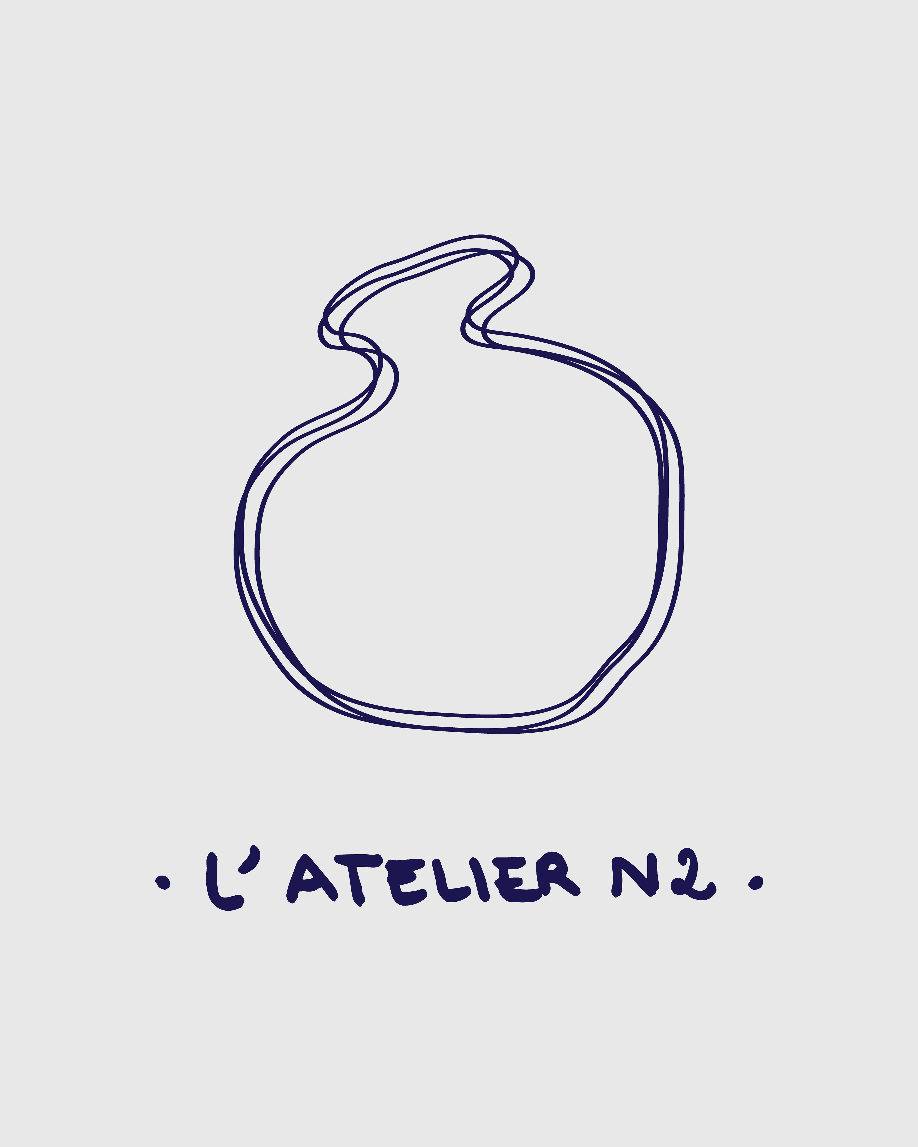 Naming + identité visuelle pour L'ATELIER N2, vases recyclés et tableaux texturés. J’ai sollicité la créatrice pour qu'elle écrive elle-même le nom de son atelier — ainsi que les numéros des pièces qui sont uniques — à la main, pour refléter la fabrication artisanale et le lien direct avec ses réalisations.