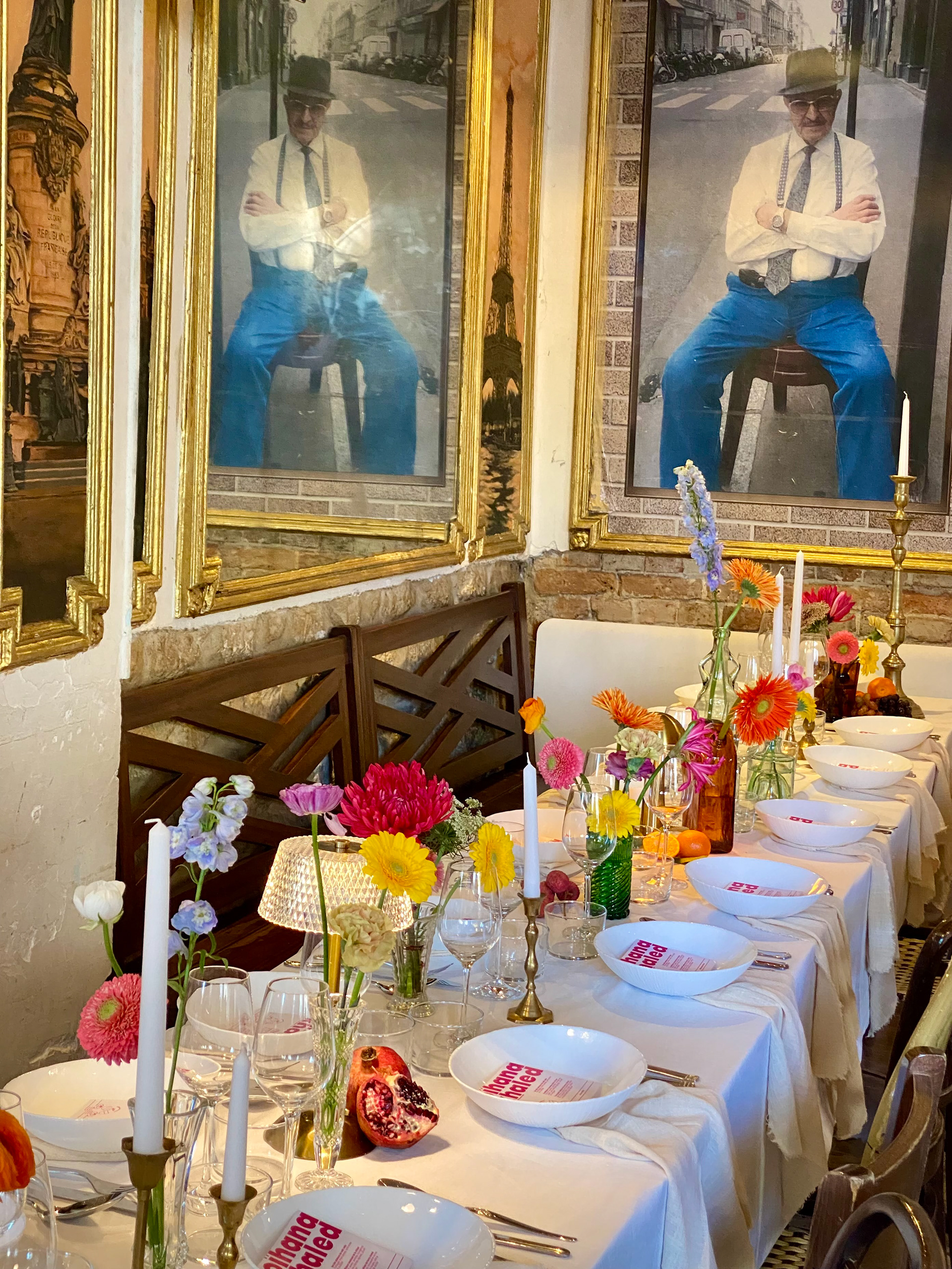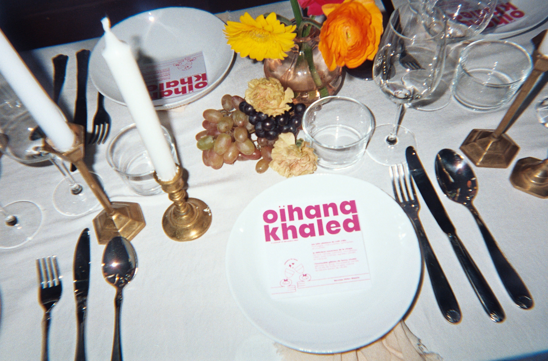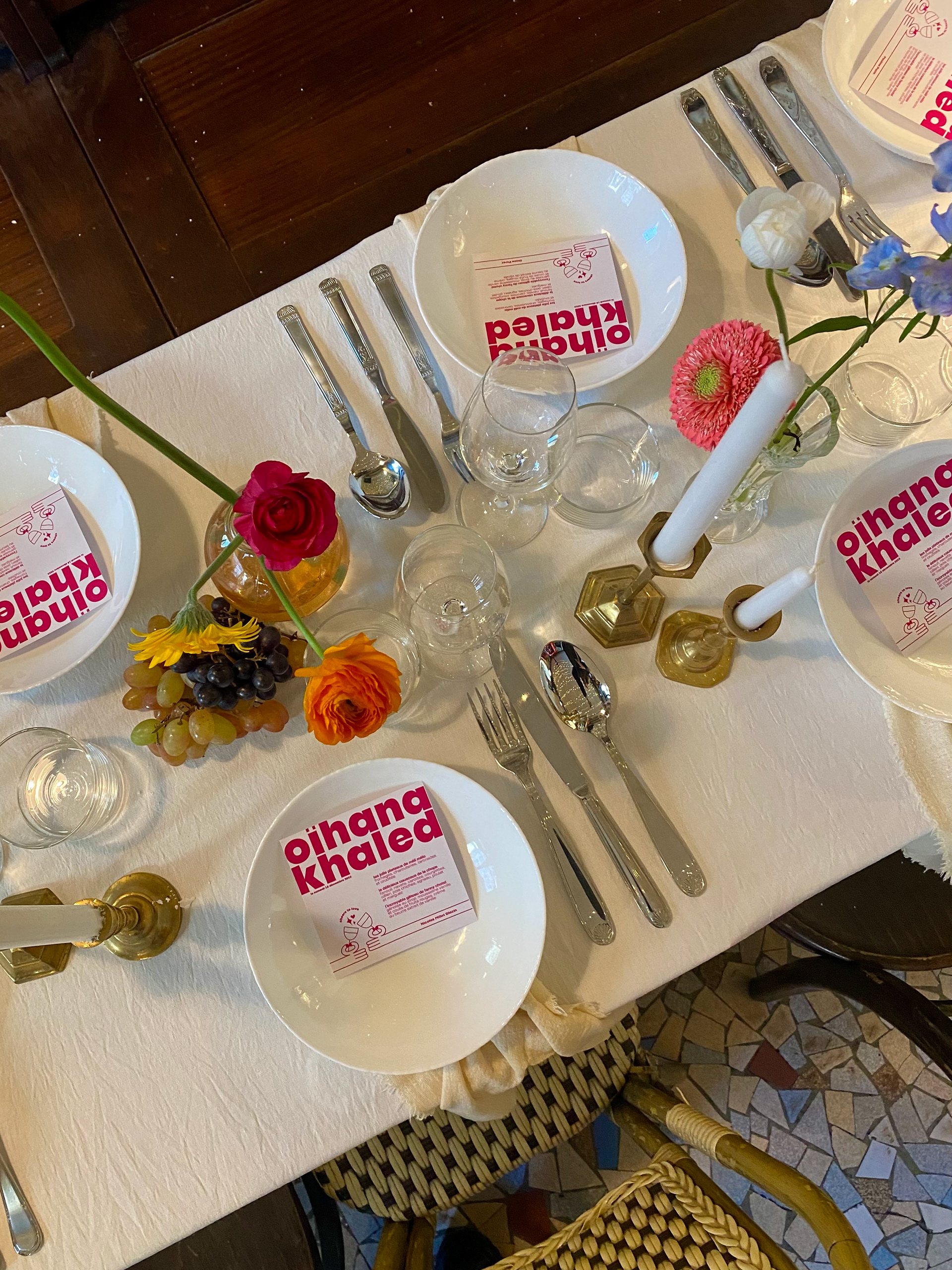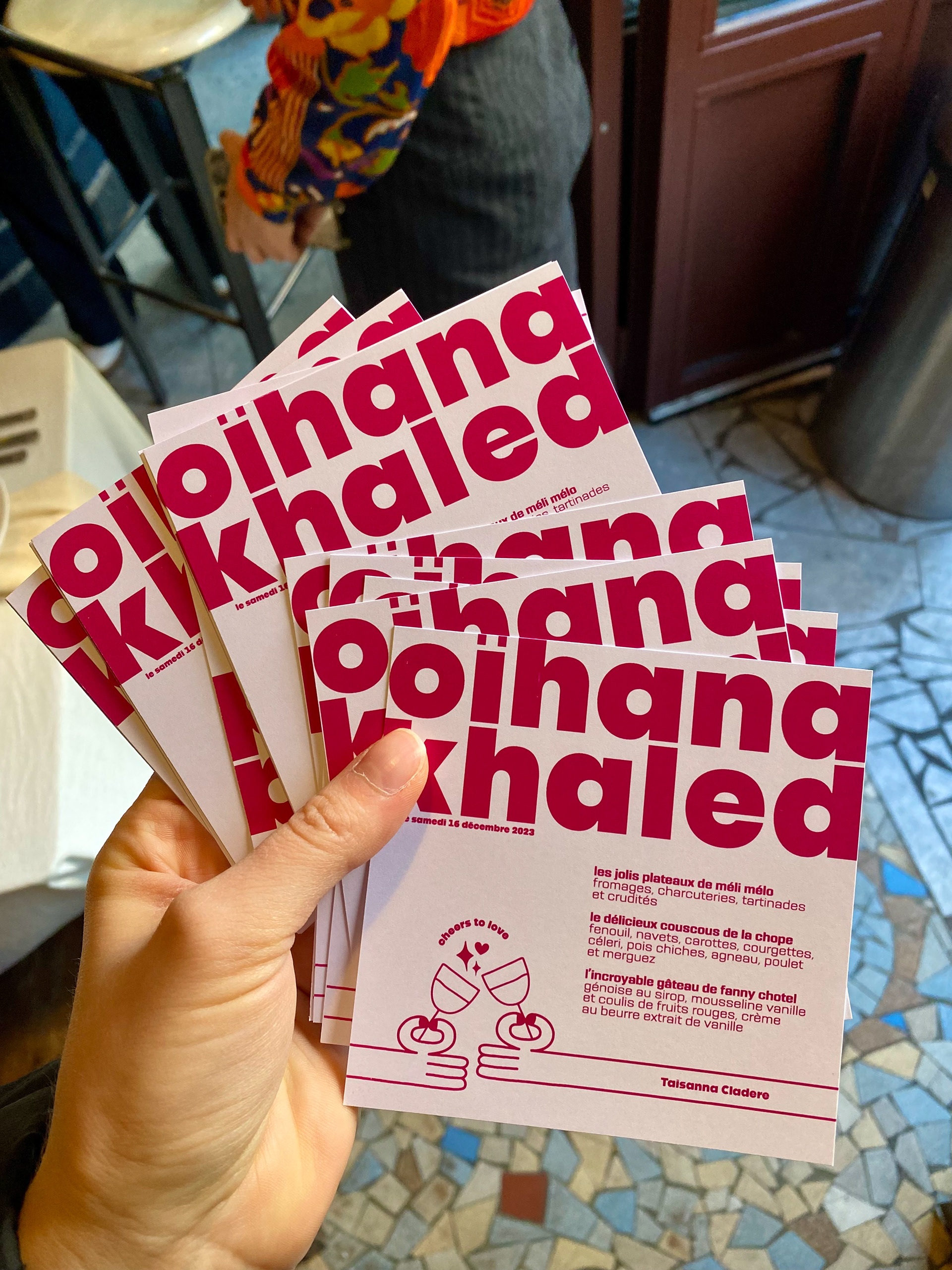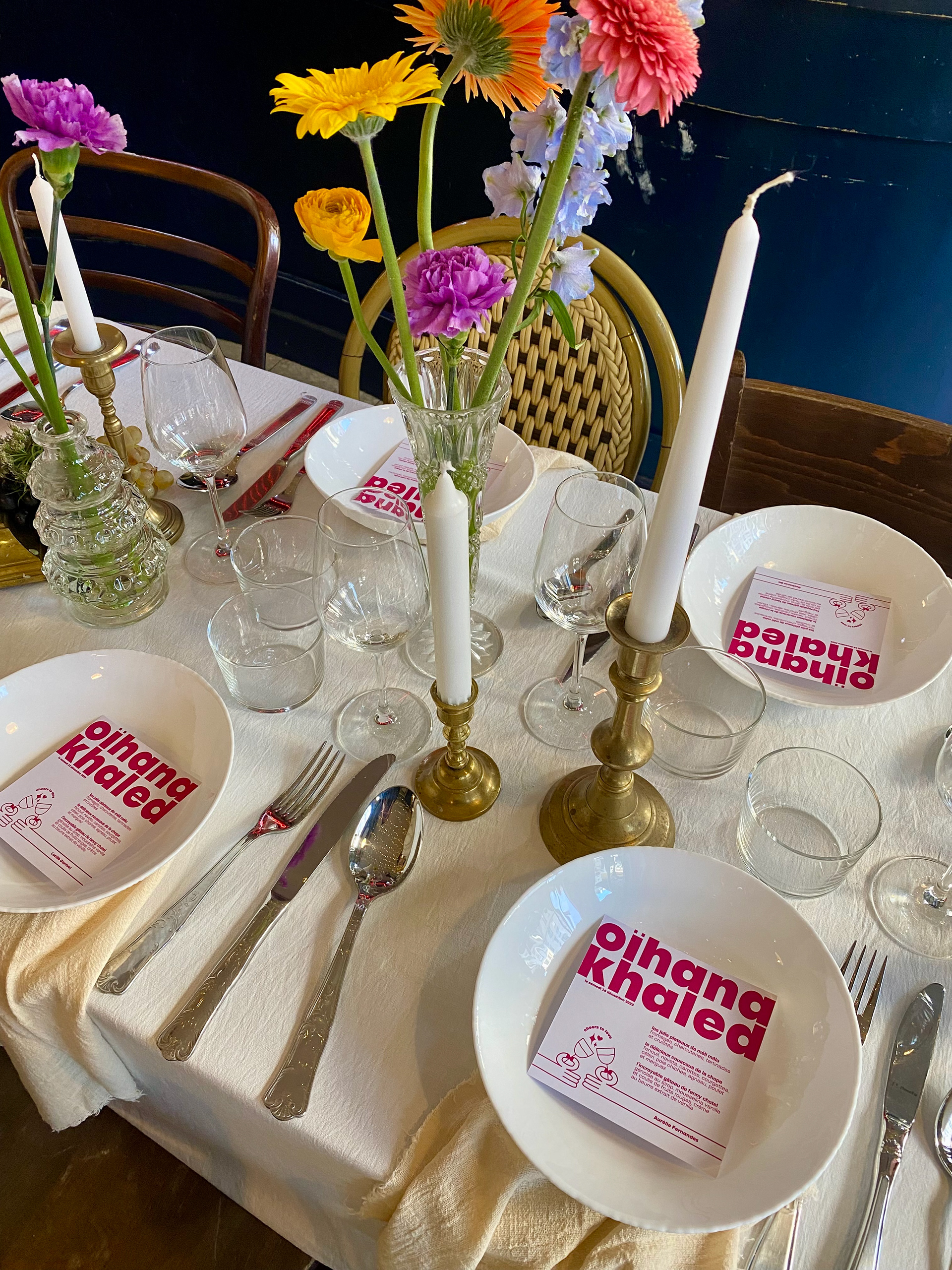 Réalisation de menus de mariage joyeux et festifs : une illustration fun et conviviale et le choix d'une seule couleur, le magenta, pour matcher avec les fleurs sans surcharger la décoration de la table.